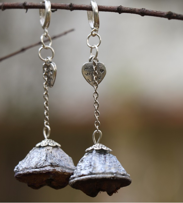 - Enhance your style with the timeless elegance of our Eucalyptus globulus Dry Fruit Natural Hoop Earrings. These sophisticated earrings feature the unique dry fruits of the Eucalyptus globulus, complemented by a delicate cone flower cap and a charming metal heart attached to a graceful silver chain. This design seamlessly blends natural elements with refined details, creating an accessory that is both beautiful and meaningful.